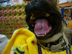 青空の下、クールに始まったワン太郎のお散歩。 しかし、今日は日曜日、コジマでお買い物すると