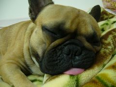 居眠り中のワン太郎のベロは、お部屋の乾燥とは関係無く? パリパリに乾いています。