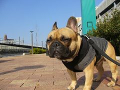 日差しが強いので、ワン太郎の目がショボショボです。