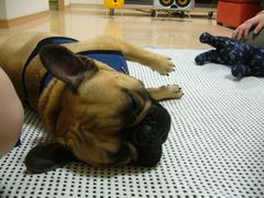 同じ姿勢のまま じっとしている練習でしたが、疲れて寝てしまいました。