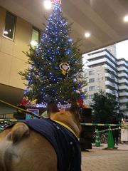 先日の大きなツリーを思い出して、ワン太郎と見に行きました。