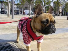 今日は、2歳になって初めてのお散歩。 気合を入れるために全身赤で決めてみました。