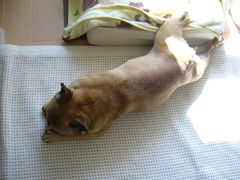 窓辺のお昼寝が、ポカポカからジリジリの暑さに変わると日陰に移動です。