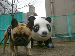 病院の帰り、普段歩かない裏通りの小さな公園にパンダがいました。激写です、、、