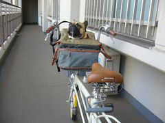 自転車の前かごの中で、意外とおとなしくしてくれるので助かります。