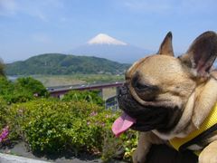 車中から富士山を眺めるワン太郎の写真を撮りましたが、富士山が写りませんでした。