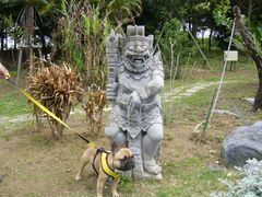 遠くに弁天赤鳥居が見えましたが、水が苦手なワン太郎は、波打ち際に近付こうとしませんでした。