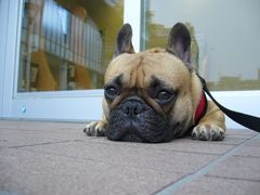 朝の散歩の時は涼しいと思いましたが、お散歩途中でぺったり放熱を始めました。