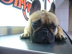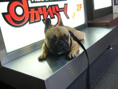 今朝はなかなかの蒸し暑さだったので、久しぶりに朝散歩中に看板犬となりました。