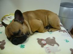 雨でお散歩に行けないことは承知済みらしく、只今オットマンの上で充電中です。