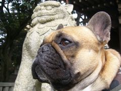 この神社の狛犬は、ちょっとフレブルっぽい顔をしています。