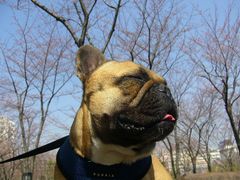 短頭種ならではのケアが必要ですが、お散歩が楽しい