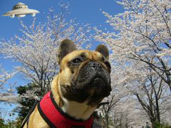 >じゅんこさん 風強かったですね。たしかに桜はまだがんばってました。 今週末まではお花見気分が味わえるかも。 鈍いワン太郎はUFO襲来に気付かなかったようです(笑