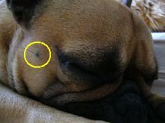 最近気付いたのですが、ワン太郎の左ほっぺから出ている「変なおじさんの毛」が